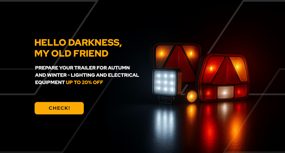 Unitrailer offers online selling of parts and accessories for trailers. Our aim is to make our offer suitable for every trailer user. We are constantly expanding our range of goods, adding new parts and accessories to the online shop such as lights and electricity, trailer wheels, hinges and connectors, propstands, jockey wheels and so on.